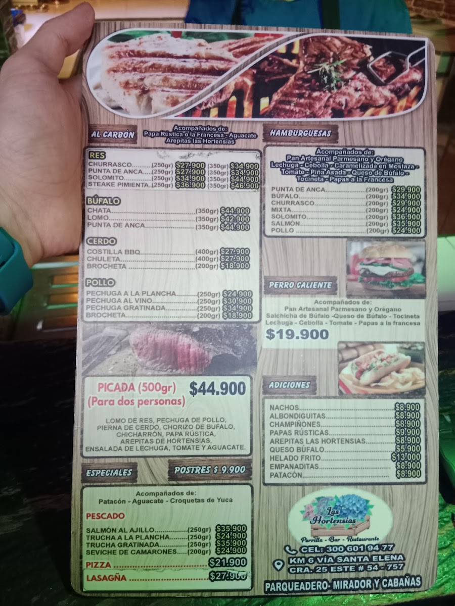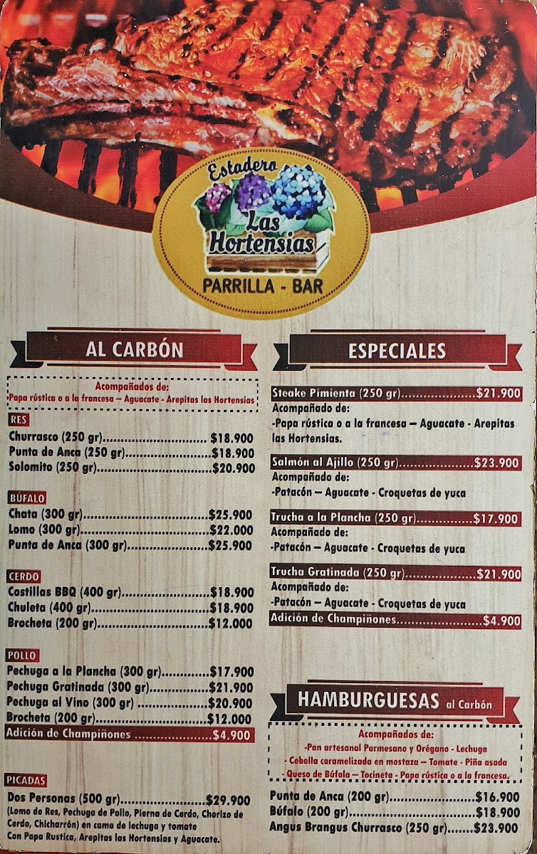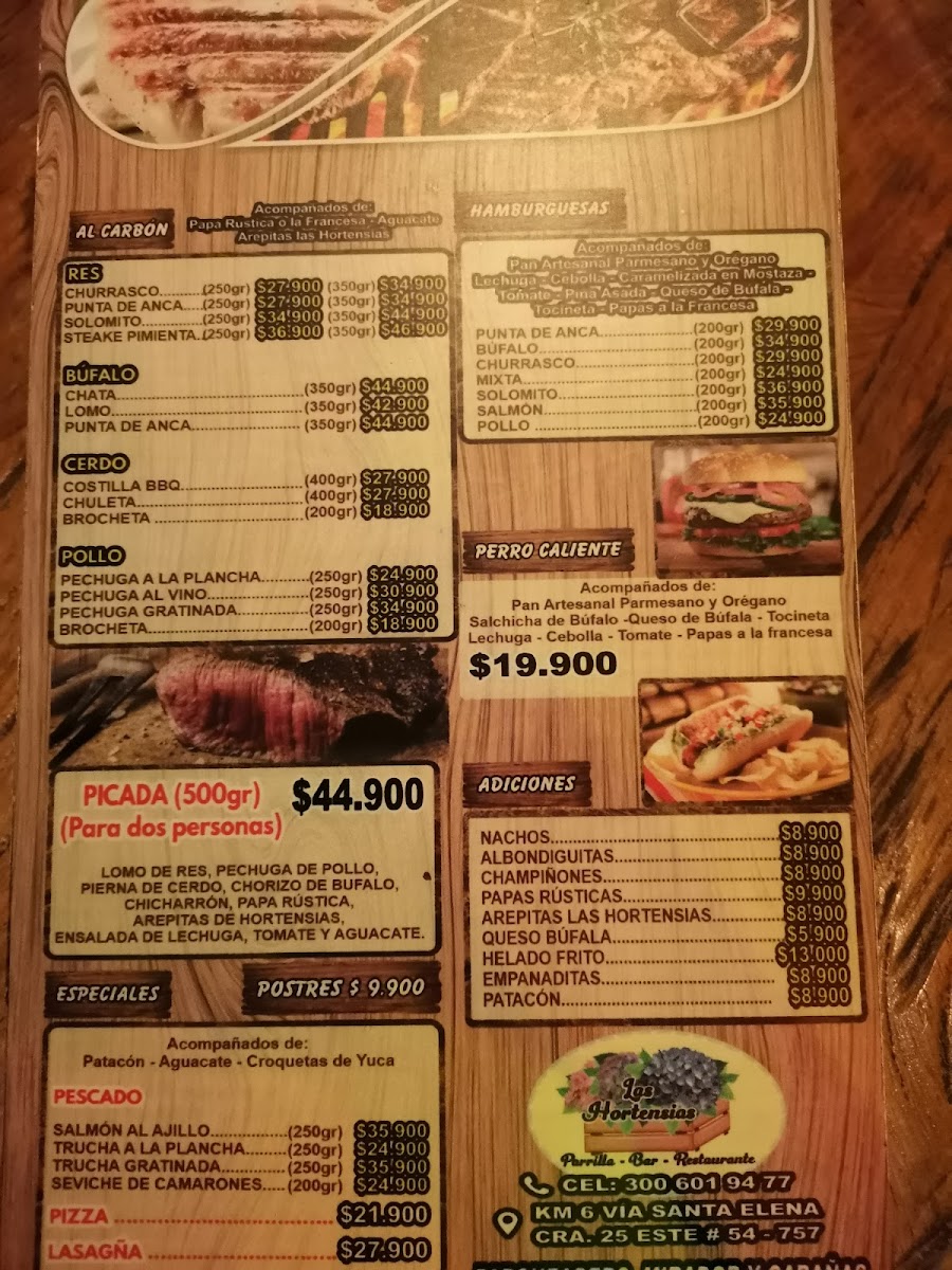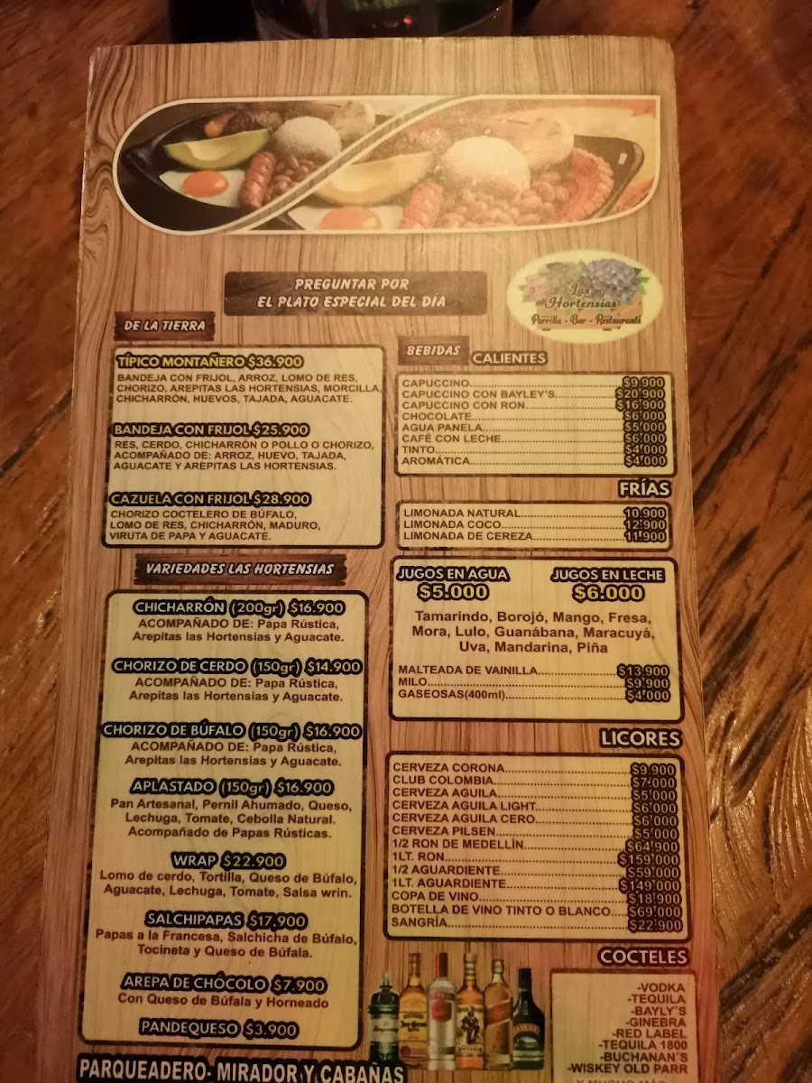 Overall, the menu impresses with its authentic grilled specialties and inviting flavors, making Las Hortensias a must-visit destination in Antioquia for anyone who appreciates genuine Colombian parrilla cuisine.